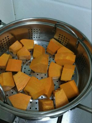 南瓜洗净,去皮,切块,上锅蒸15分钟