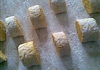 将醒好的面团擀成片儿,在面片上撒少许干面粉,卷成卷,在这个过程中不用放任何的油。