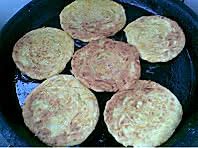 取一小团压扁成饼状,油温七成热下锅煎,不断翻面,中小火煎至两面金黄即可