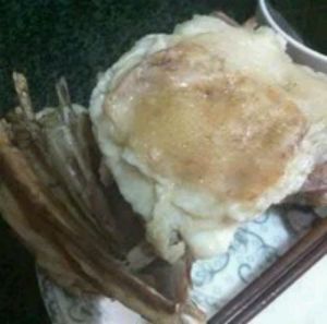 撕去上面锡纸,把羊排翻面,再烤制20分钟左右。