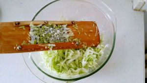 西葫芦刨成丝,葱切葱花,用少许盐腌一下,放一边