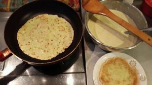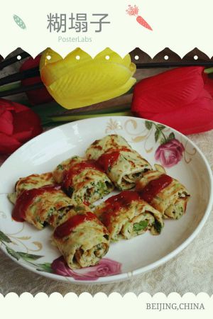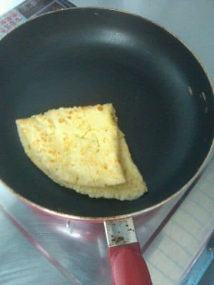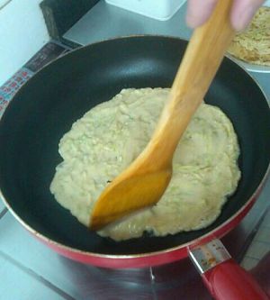 顺时针方向迅速把面糊摊平,摊的薄一些。