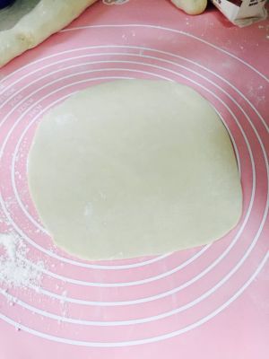 醒好的面团分成8份,擀成薄圆饼