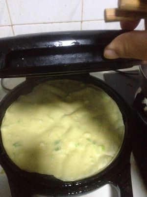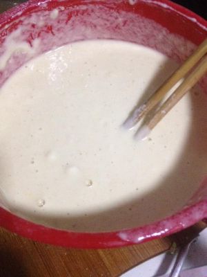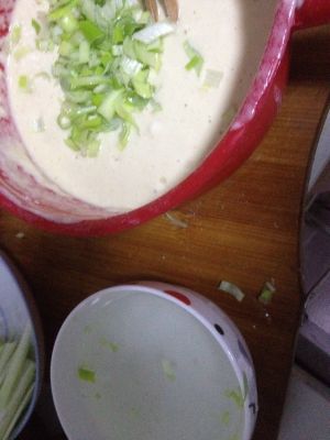 研制肉的过程中制作简单面饼.,用200g面粉,加两个鸡蛋,盐,十三香,一会再放提前泡葱姜水中的葱姜,把葱姜放面中搅匀!(把泡水的葱姜再利用一下,不要浪费东西哦)