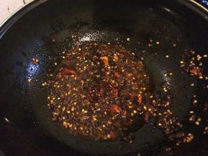 油微热,放麻辣香锅料,如果想要更辣,可以再加点干辣椒。翻炒!