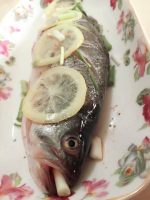 海盐、黑胡椒、柠檬、葱段、料酒腌制一个小时