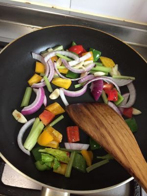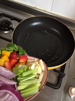先把不容易熟的炒一下,然后加上其他配菜,放盐,生抽,蚝油。炒软后加水。
