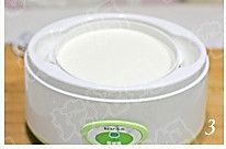 将酸奶机中配备的塑料碗(包括盖子)事先用开水浸泡2-4分钟消毒,然后将酸奶和纯牛奶都倒入碗中,搅拌均匀;