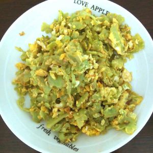 先炒苦瓜,把水分炒干些,再放鸡蛋翻炒