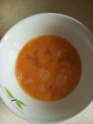 鸡蛋加入盐和少量黄酒、葱末打匀。