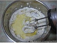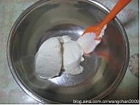 奶酪倒入盆里,哇,奶香味特别浓郁,像不像浓稠的老酸奶,哼,可比老酸奶值钱多了