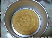 混合6分发淡奶油,7寸模放入6寸手指饼,刷咖啡酒糖液,倒入一半芝士糊