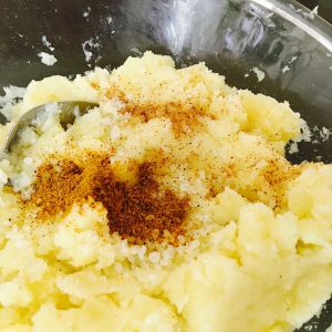 在土豆和豆渣混合泥中加入少许王守义十三香和盐(用量根据自身口味而定)