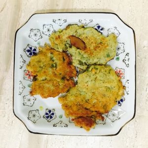 土豆,胡萝卜,打成丝儿,洋葱切片,火腿切丁,打两个鸡蛋,适量面粉,矿泉水,少许盐,打成糊状,不能太希