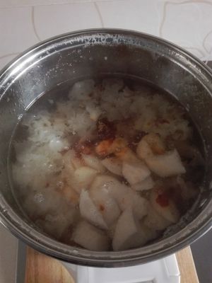 到时间后,放入雪梨快,用火锅功能的6档,继续煮10分钟;