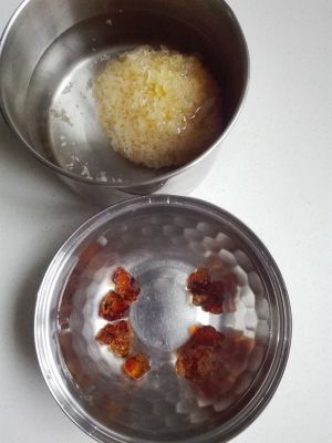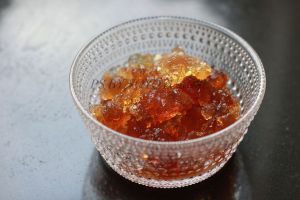 桃胶浸泡一晚,夏天放冰箱泡发,去除杂质,清洗干净。
