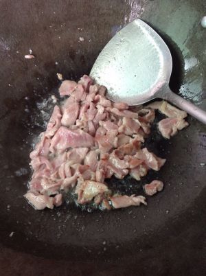瘦肉放进锅中炒香 (注:瘦肉要热油下锅才好吃)