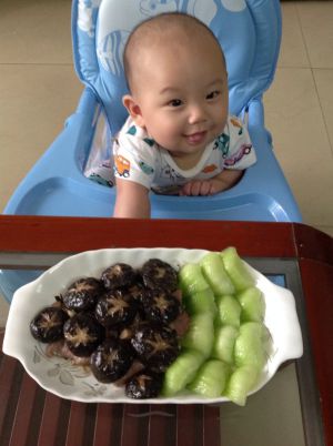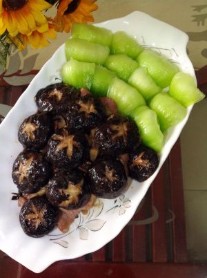 青菜和香菇摆好造型,炒香菇的汤汁淋在青菜上,完成!