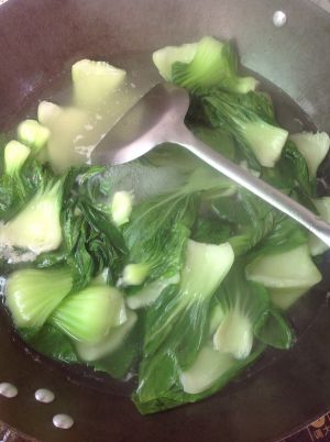 先烫青菜,水开下青菜,放适量盐,煮到看来起来透明就可以了