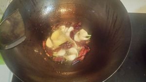 接着倒入姜蒜暴香,火候要大注意不要炒糊