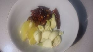 准备小料,其实放些葱段也很棒,喃家赶上没葱了,所以没有放,爱吃香辣的多放点辣椒,爱吃蒜香的多放些蒜瓣。