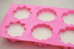 倒入自己喜欢的模具里。注意要用耐热硅胶材质的才好脱模。室温冷却后,蒙上保鲜膜冷藏2小时左右脱模。 没有花式模具则可以倒入方形饭盒,脱模划菱形块即可。