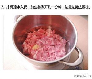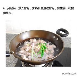 排骨洗净后,用清水净泡半小时,泡出血水,中途要翻翻身