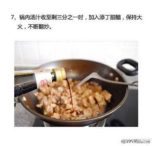 45min后见汤汁剩4/1时,出肉装盘,捞净残渣,加入酸梅酱,尝味,调制以酸甜适中为佳,收至浓稠改小火,分次浇淋肉上即成。