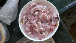 排骨剁碎,小点,好炸!忘记拍照片! 放料酒、盐、1个鸡蛋、玉米淀粉腌制15分钟。