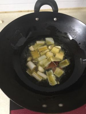 葱姜蒜段'桂皮'大料'下锅炒出香味出锅'油留在锅里