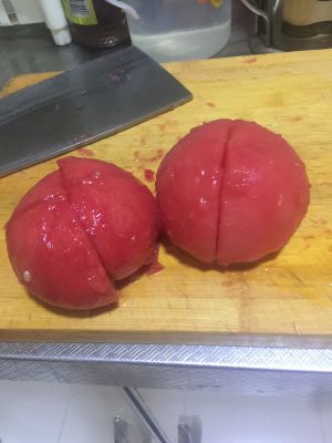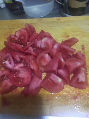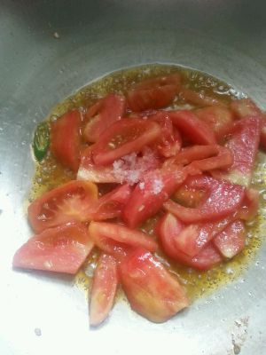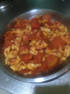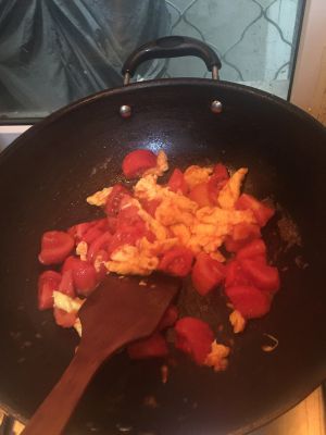 翻炒,依次放入糖盐,五分钟后西红柿变形出锅盛盘