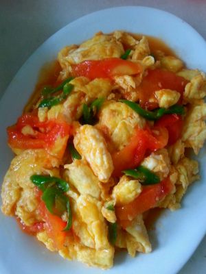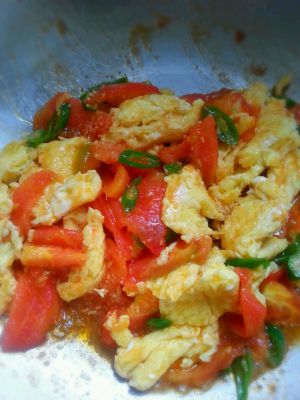 西红柿切好下锅另外炒熟,约炒3分钟后将炒熟的鸡蛋下锅与西红柿合,调生抽,盐,鸡精,白糖即成,关火。