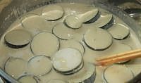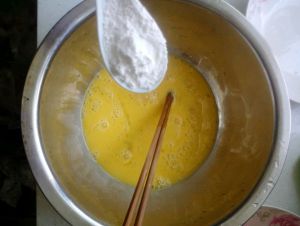 茄子滚刀切块倒进搅匀的鸡蛋淀粉里,保证每一块茄子都挂上芡