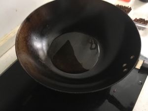 锅中倒入油加热,要比平时多放些油,茄子比较吸油