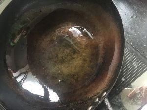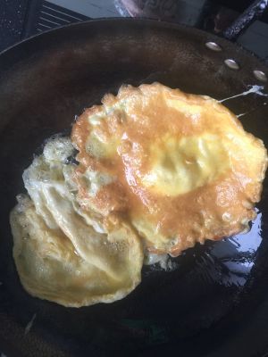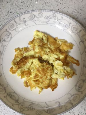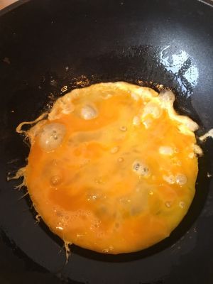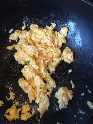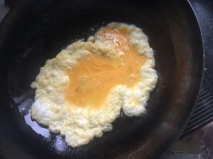 锅里倒入少许油,将提前搅拌好的鸡蛋倒进去翻炒,炒熟盛出。男神这鸡蛋炒的稍微有点过