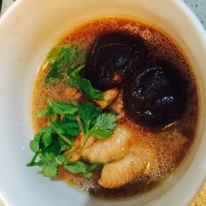 准备材料。姜切片,大葱切片。红薯粉条用冷水浸泡15分钟。香菇用淡盐水浸泡。鸡去除屁股和内脏,清洗干净后,剁成小块,备用。