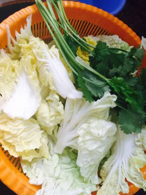 将鱼骨捞起,用鱼汤煮菜,捞熟