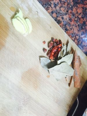 把蒜、姜、葱头、干辣椒、郫县豆瓣一起爆香,然后加入适量清水煮开,