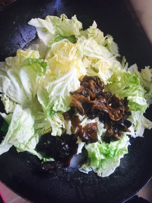 忘拍照了,倒入油,热后关火放入葱姜末,放入辣椒花椒,放入泡椒酸萝卜,炒!再放入调料包炒,然后放入白糖,米酒,白酒,加水煮!
