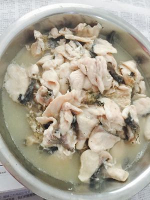 鱼片是在卖鱼那里切好的,拿回来先放盐、生抽、鸡精、白胡椒、生粉腌制10-20分钟