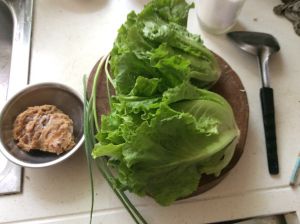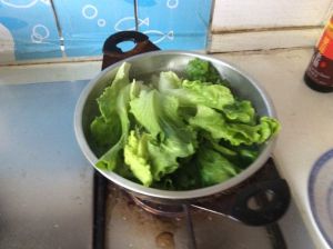 将生菜叶摘下来洗净沥干水份并掰成小段待用