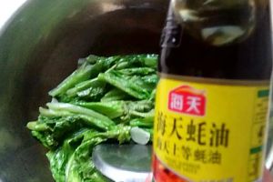 锅烧油,蒜末炒香,一大勺蚝油炒香,加点花椒水,放少许盐味精鸡精,白糖调味,勾芡淋明油出锅浇在摆好的生菜上即可