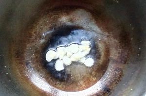 蒜去皮洗净切片,起油锅大火爆香蒜片