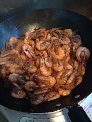 锅内放入油,葱姜爆香,放入大虾,开始变色时,放入盐,糖,料酒,醋,生抽或者老抽。