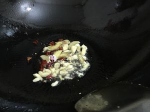 把油盛出,剩少许即可,把花椒,干辣椒,姜,蒜,先爆香,炒一炒