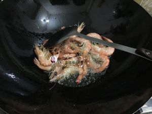 烧锅热油,把虾过油,炸一炸,炸的过程最好用个盖子盖着,防止溅油,大概炸三分钟就好,炸好把虾盛出