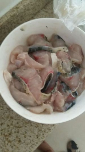 骨头和鱼片分开,鱼片放茶油,生粉,盐腌制待用。