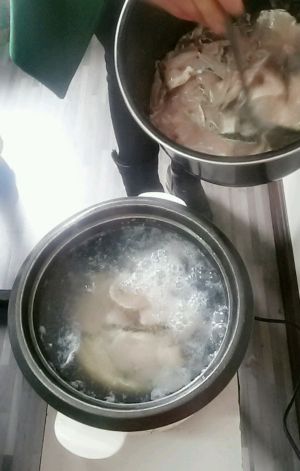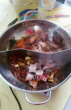 倒入开水,加盐,鸡精还有酸菜里的调味包(佐料按个人口味添加)