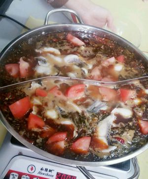 然后把锅里鱼骨➕鱼头捞出、留汤➕酸菜再慢慢熬几分钟、汤变白就可以下鱼肉片了