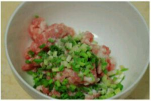 肉末 加上葱花 洒上细盐,用筷子搅拌均匀